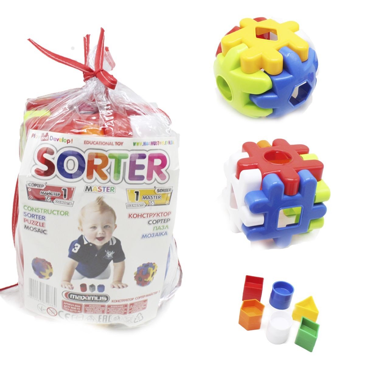 Набір конструктор-сортер з фігурами. Сортер – це іграшка, мета якої правильно співвіднести фігурки прорізами. Деталі сортера великі, відмінно підійдуть для дітей від року, зроблені у вигляді геометричних фігур. Набір складається з 16 елементів виконаних у 5 кольорах.