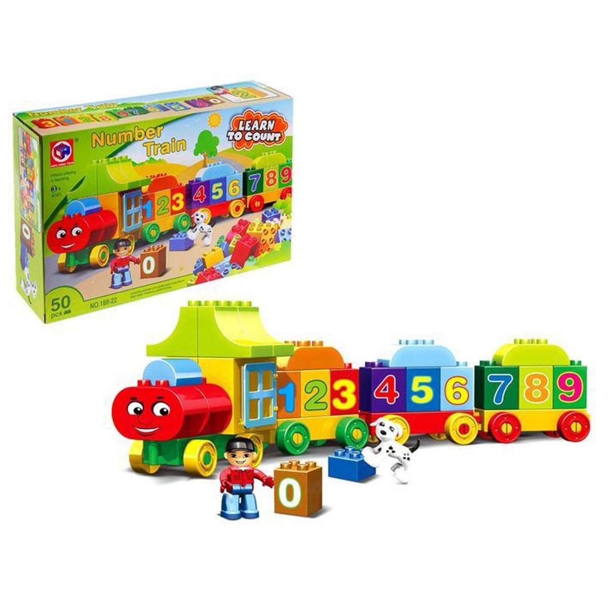 Конструктор "Вчимо цифри". Аналог LEGO DUPLO. Можна зібрати невеликий поезл з вагончиками, на яких намальовані цифри. У комплекті: 50 деталей досить великого розміру. Виготовлений з якісного пластику.