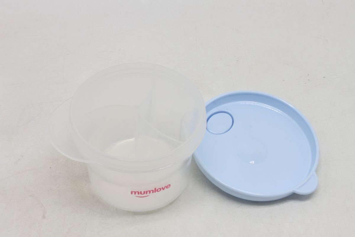 Контейнер для суміші призначений для зберігання дозованої кількості сухої суміші для діток на штучному або на змішаному годуванні. У ньому можна розмістити 3 порції суміші, що дуже виручить вас в поїздці і на прогулянці. Кришка з дозатором, який прокручується надає доступ до будь-якої секції. Роздільники у скляночціі знімні. Виготовлений контейнер із харчового пластика (не містить бісфенол А). Обʼєм: 200 мл.