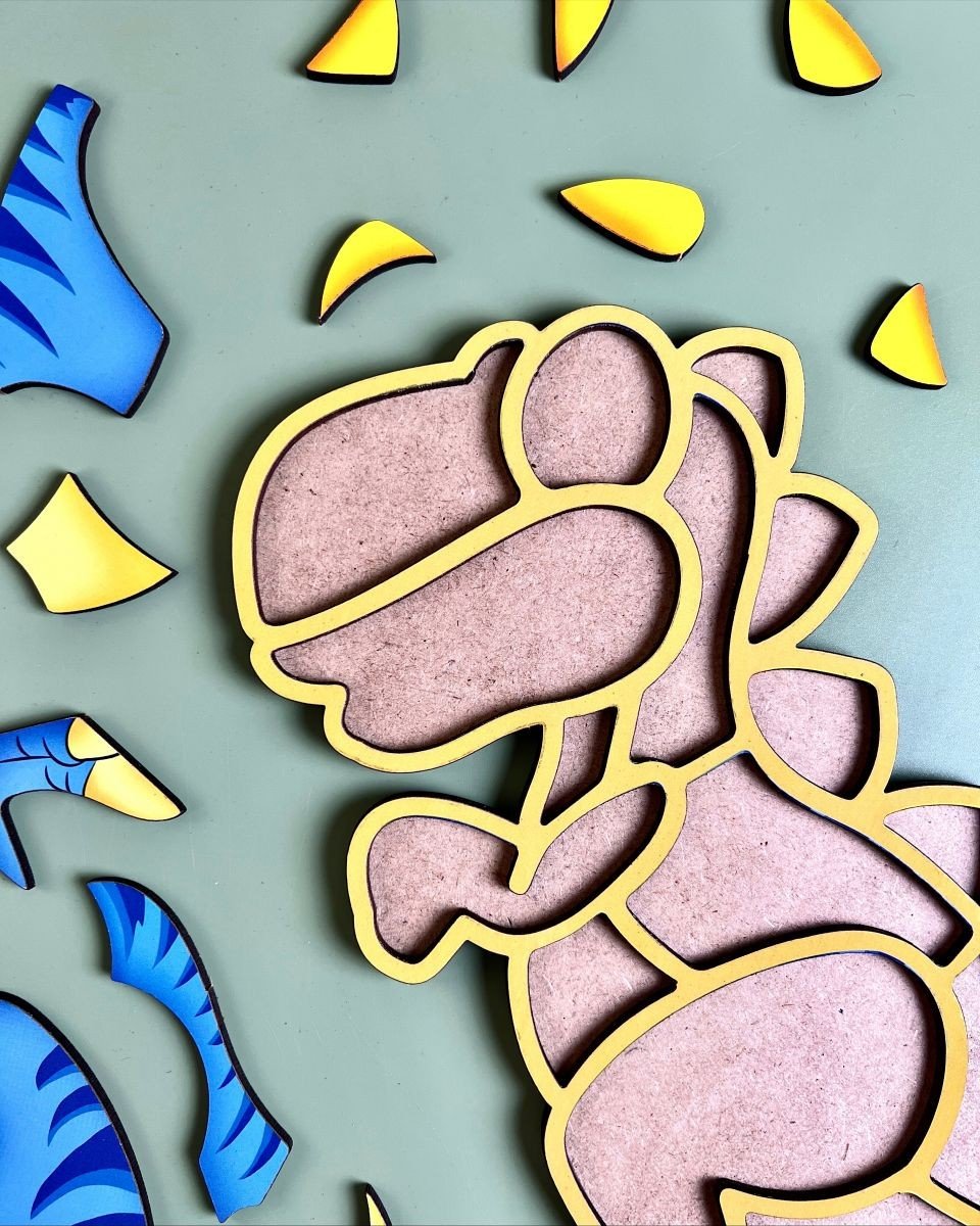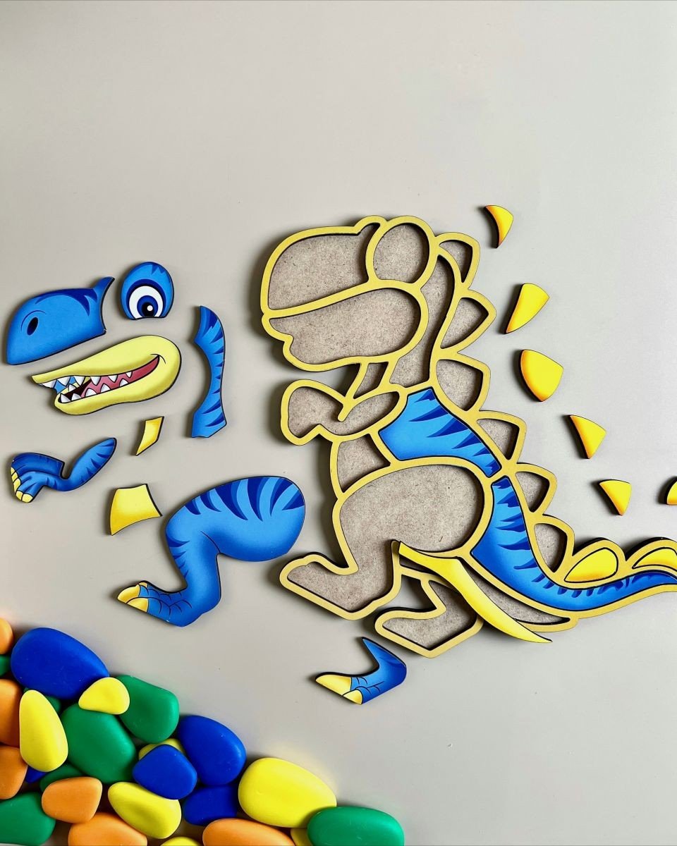 Контурний пазл - вкладиш добре розвиває дрібну моторику рук, логічне мислення та візуальне сприйняття дитини. Рамку виконано у вигляді милого динозаврика. Головна мета – знайти для всіх елементів відповідні отвори на рамці-основі. Розмір основи 24,5х22 см.