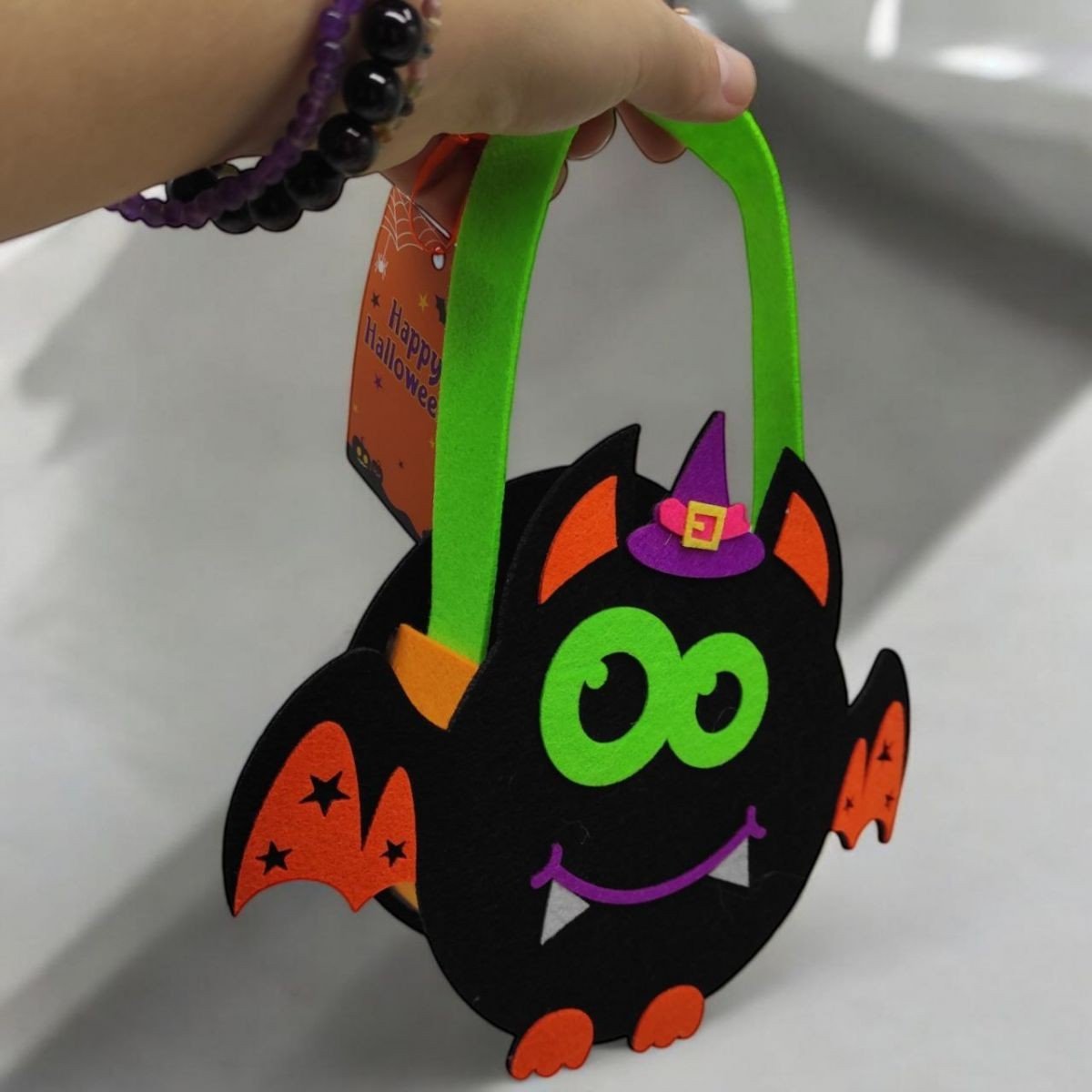 Мила сумочка з фетру виконана у стилістиці Хелловіну. Матеріал виробу цупкий та добре тримає форму. Частини сумочки надійно зʼєднані між собою за допомогою клею. Розмір сумочки (з ручкою) - 23х5,5х22 см. Такий аксесуар чудово доповнить святковий образ та створить відповідну атмосферу.