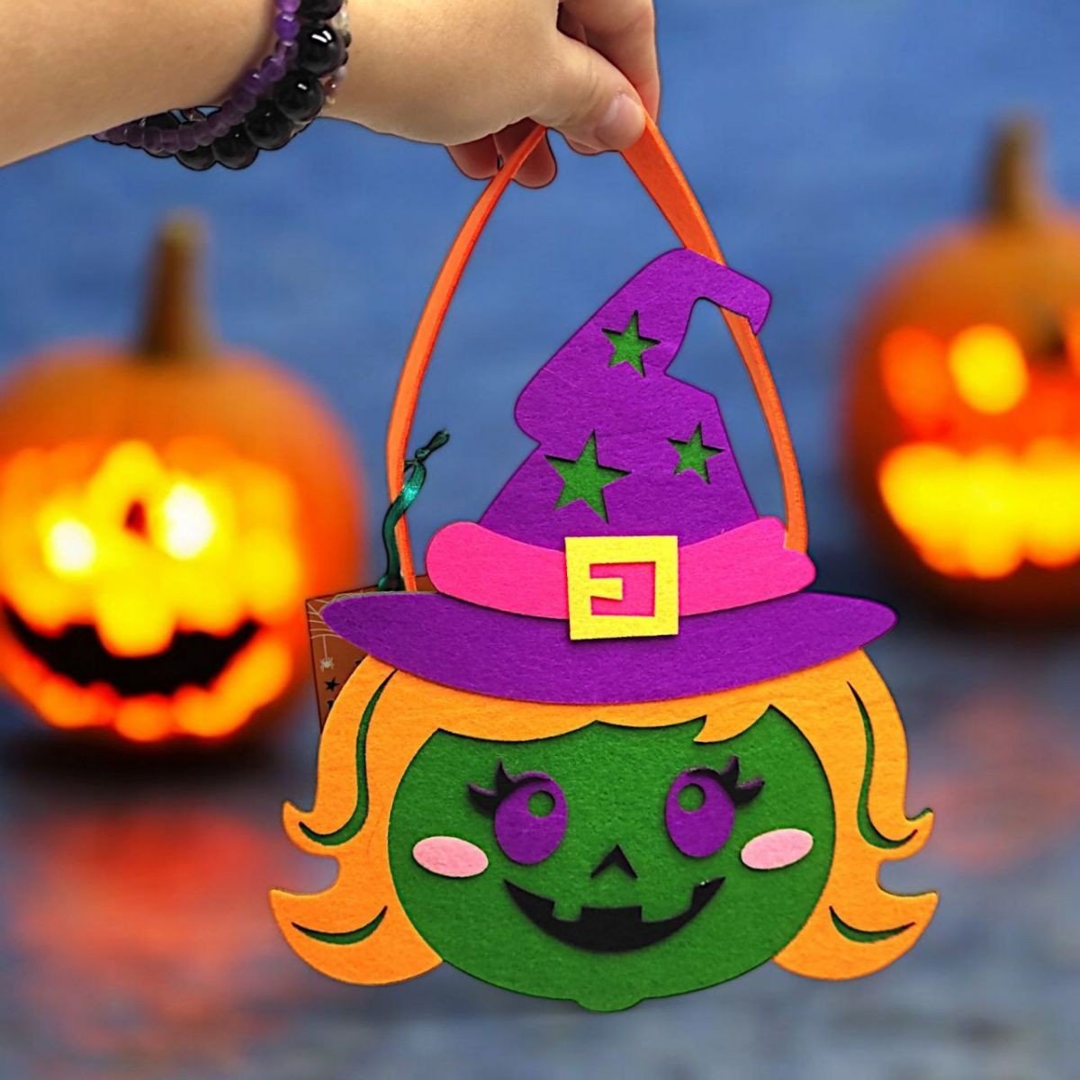 Мила сумочка з фетру виконана у стилістиці Хелловіну. Матеріал виробу цупкий та добре тримає форму. Частини сумочки надійно зʼєднані між собою за допомогою клею. Розмір сумочки (з ручкою) - 23х5,5х17,5 см. Такий аксесуар чудово доповнить святковий образ та створить відповідну атмосферу.