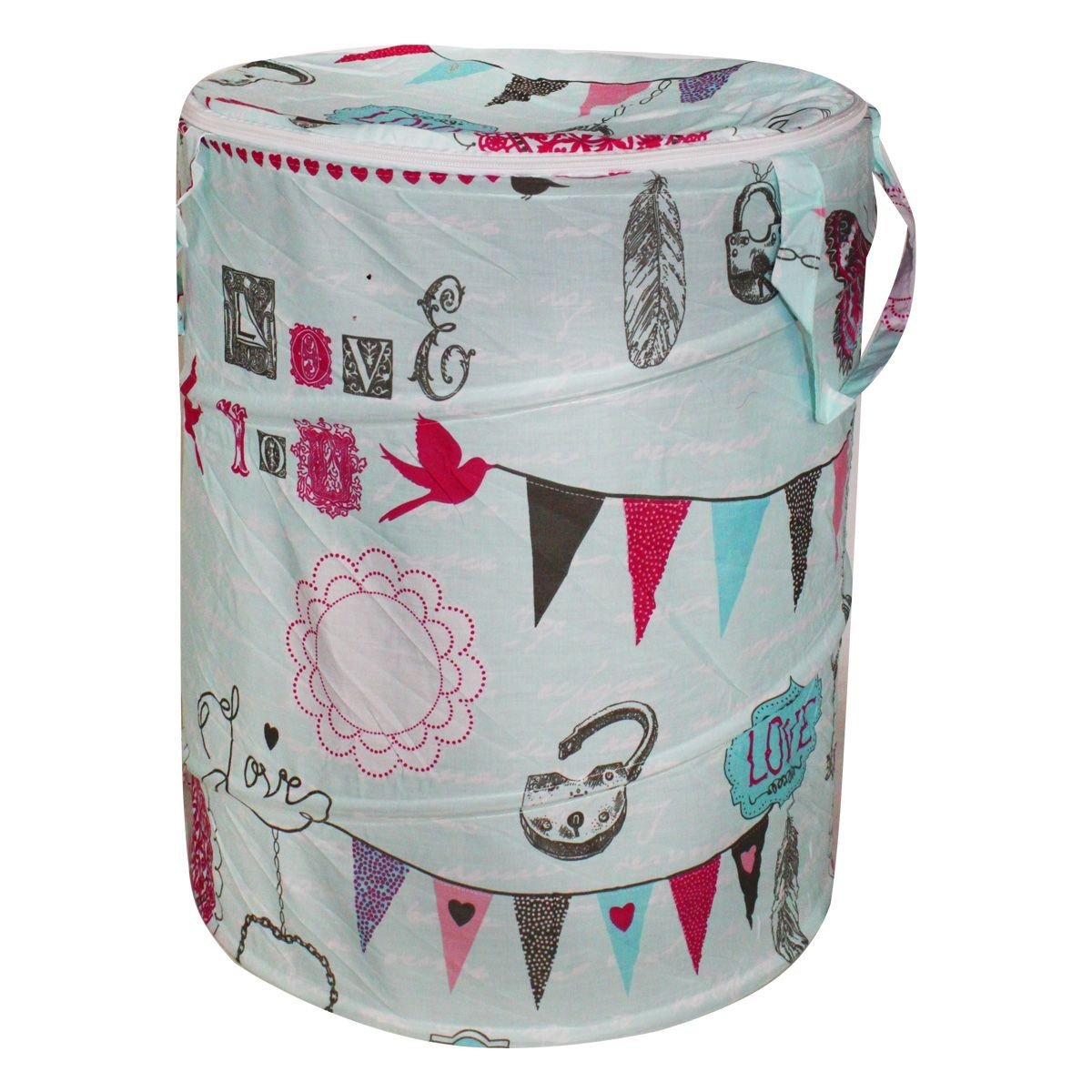 Кошик для іграшок, тканинна з яскравим принтом. Кошик легко складати і розкладати за рахунок зручного каркаса, вона також оснащена двома ручками. Закривається на блискавку. Розмір - 43х50 см.