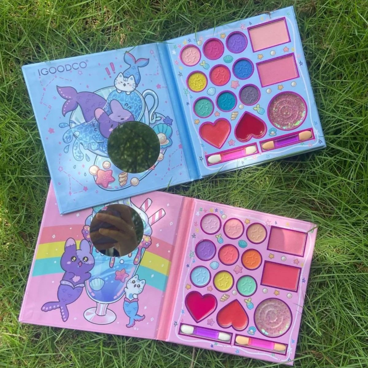 Опис Косметика 9 кольорів тіней та аплікатори, румʼяна, блиск для губ, у коробці