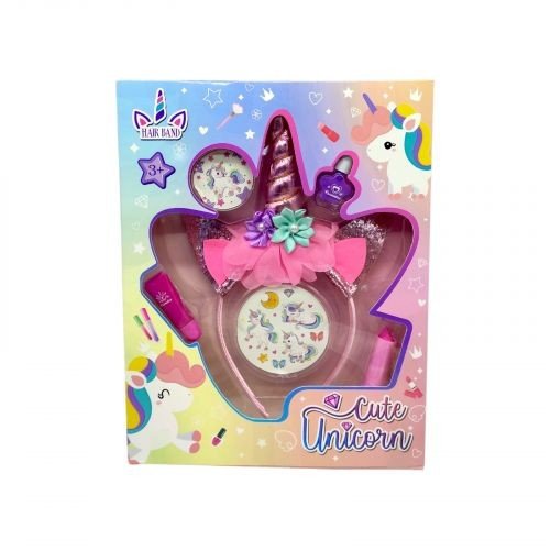 Опис Косметика з прикрасами 2 види, обруч, лак для нігтів, блиск, помада, наліпки, в коробці (РОЖЕВИЙ)