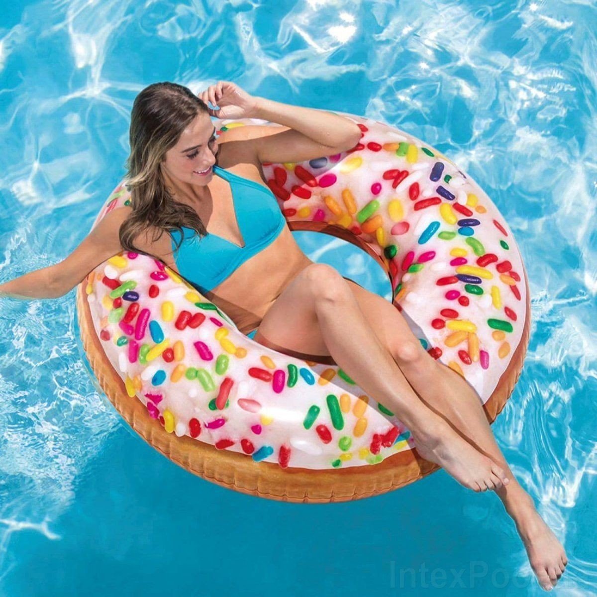 Круг надувний "Пончик з присипкою". Діаметр - 114 см. Виготовлений з високоякісного вінілу, товщиною 0,25 мм. Максимальне навантаження: 80 кг. Вік: від 9-ти років.