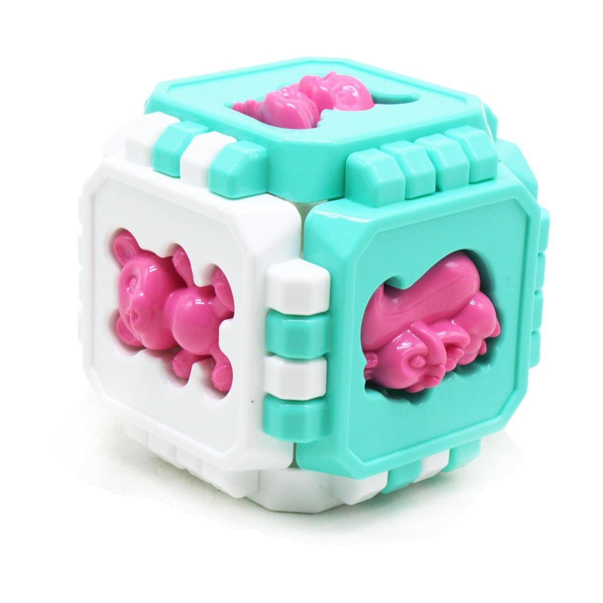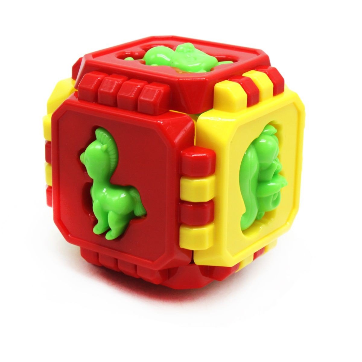 Яскравий пластиковий кубик-пазл. Сенс гри з кубом полягає в тому, щоб з 6-ти плоских сторін з пазлами зібрати куб правильно. Крім того, на кожній стороні є отвір у формі тваринного і окремо - фігурки тварин. Потрібно зіставити фігурки і отвори. Також можна грати окремо з фігурками тварин, будуючи з кубика будиночок. Розмір кубика: 8,5 х 8,5 см.