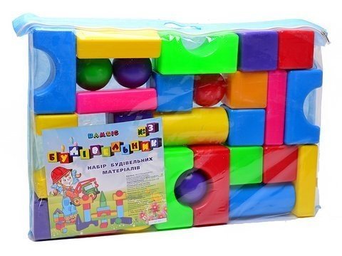 Кубики "Будівельник №3". Конструктор з великими деталями (35 деталей). Набір з різних за кольором, формі кубиків. Так, розмір одного кубика - 8 х 8 см. Розвивають дрібну моторику, кмітливість, колірне сприйняття, координацію.