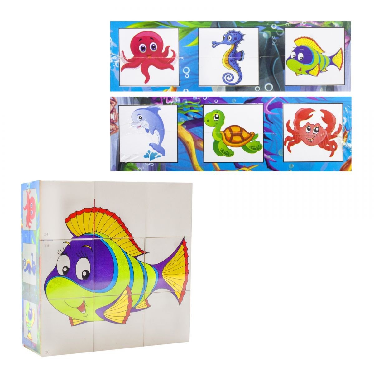Набір з 9 кубиків "Збери картинку". 6 картинок. Дитина, граючи прекрасно тренує логіку, моторику, колірне сприйняття, мислення, зорову пам'ять, посидючість. Розмір кубика - 4 х 4 х 4 см.