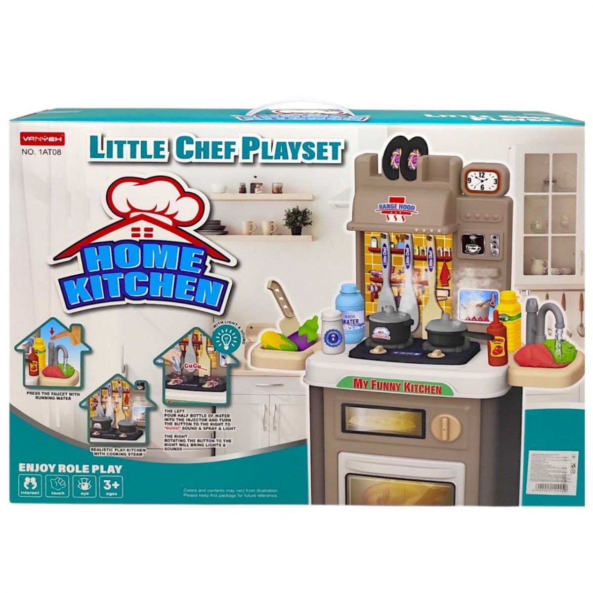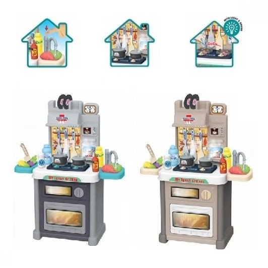 Іграшка "Моя Весела Кухня" це можливість зацікавити дитину до хатніх обовʼязків та привити любов до готування. Комплект складається з різних побутових елементів таких як, посуд, лопатки, кастлюйки та продуктів, та найголовніше - власна міні кухня, щоб дитина могла більше поглибитись у гру. Іграшка світиться та має звукові ефекти такі як музику, а також для реалістичномті є елементи в які можна залити воду. Виконаний з якісних та міцних матеріалів, буде чудовим подарунком дитині. Рекомендовано для діток від 3 років.