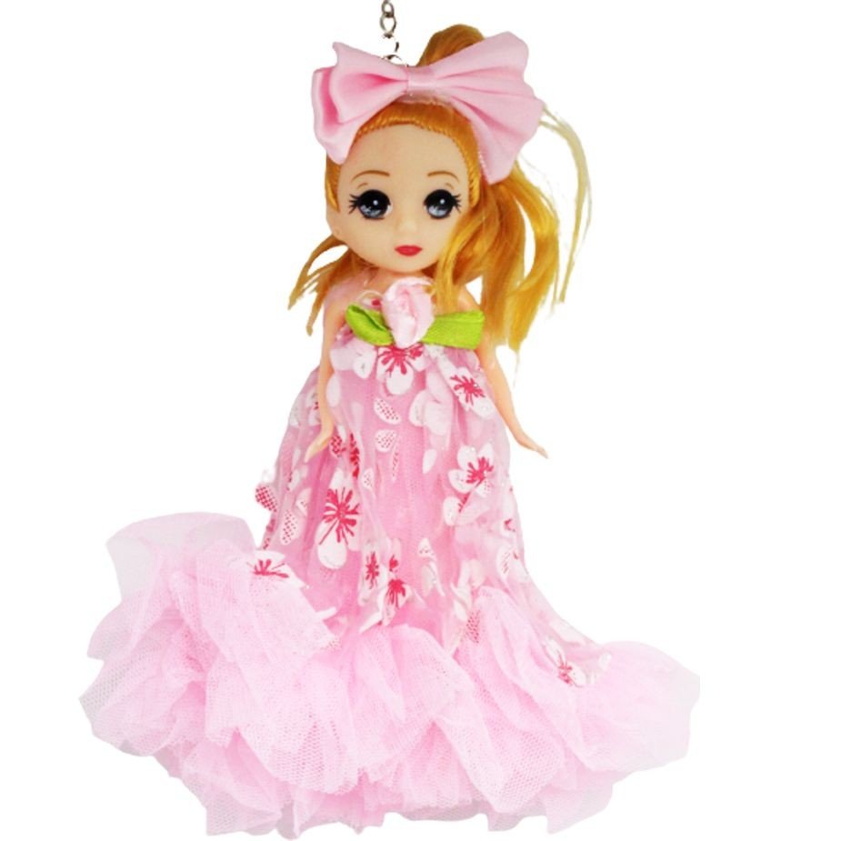 Красива лялечка, яку можна прикріпити до сумки, одягу або ключів за допомогою металевого кільця. Одягнена в пишну фатинову сукню, прикрашену квіточками та оборками. Волосся завʼязане в хвіст за допомогою резинки. Розмір лялечки: 7х4х6 см. Виконана з якісних та міцних матеріалів.
