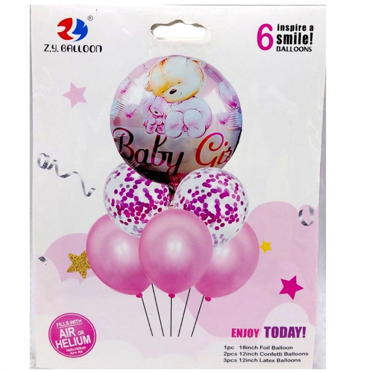 Кулі набір-святковий "Хлопчик" /"Дівчинка" 6шт. (1шт.-45см, 5шт.-30см)