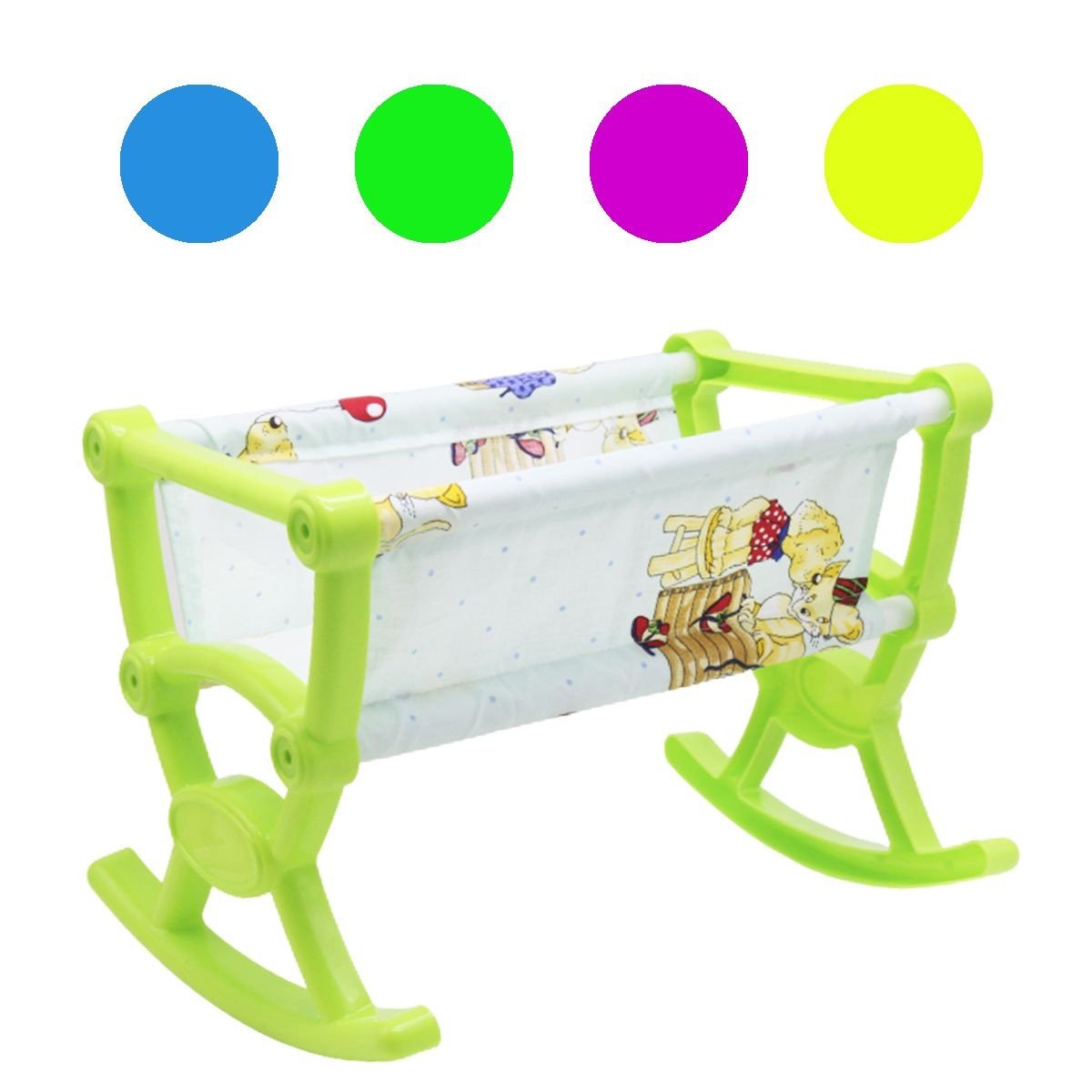 Яскрава пластикова ліжечко для ляльок. Легко збирається. Основа зроблена з пластику, усередині текстильна підкладка. Підійде для ляльок, пупсів і м'яких іграшок. Розмір ліжечка: 35 х 26 х 25 см. Різні кольори в асортименті.