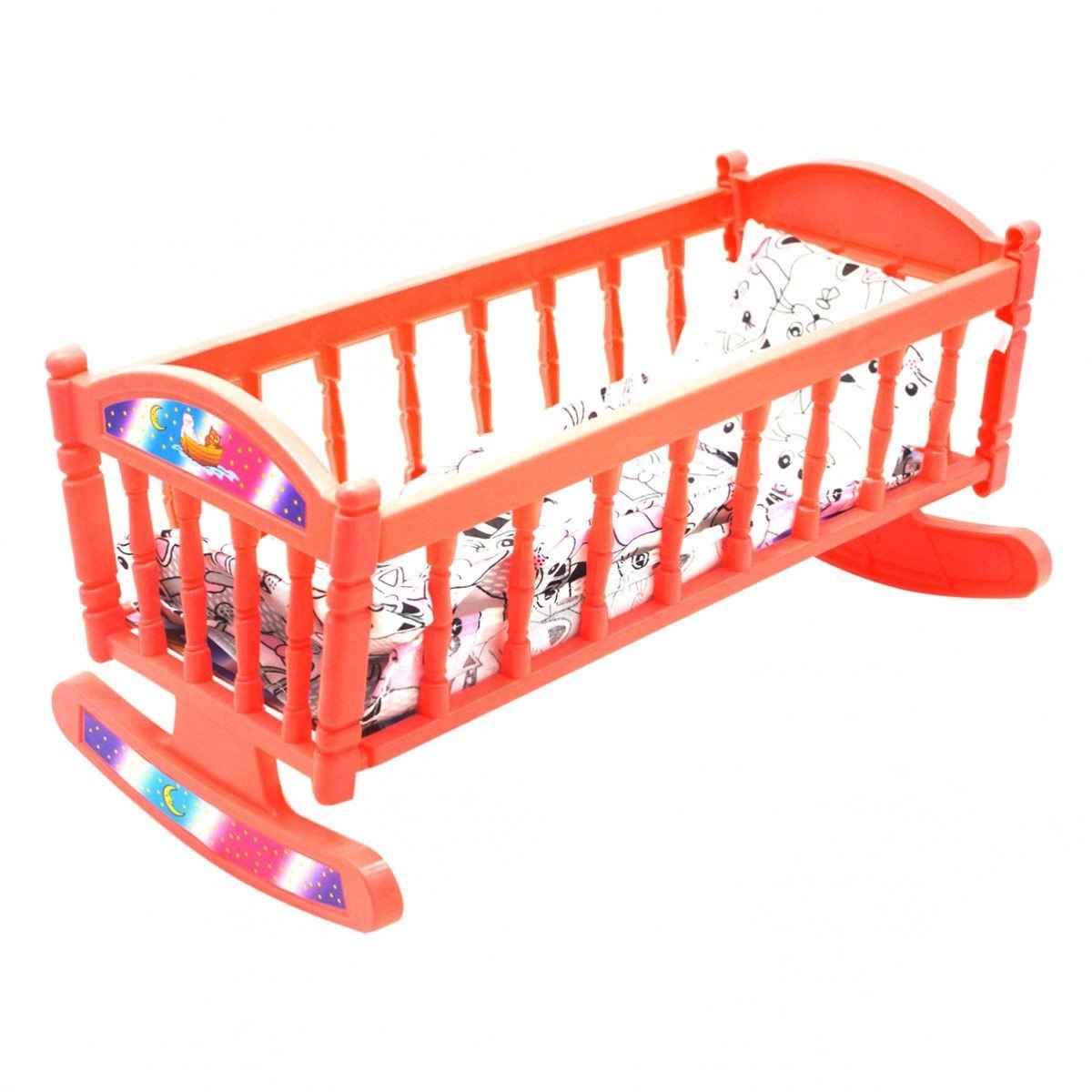 Бренд: MIC Упаковка: Пакет Колір: Кораловий Вага з упаковкою: 295 г Габарити в упаковці: 41 x 20 x 6 см Габарити без упаковки: 36 x 18 x 16 см Країна виробник: Україна Матеріал: Пластик, текстиль Комплектація: Ліжечко, постіль