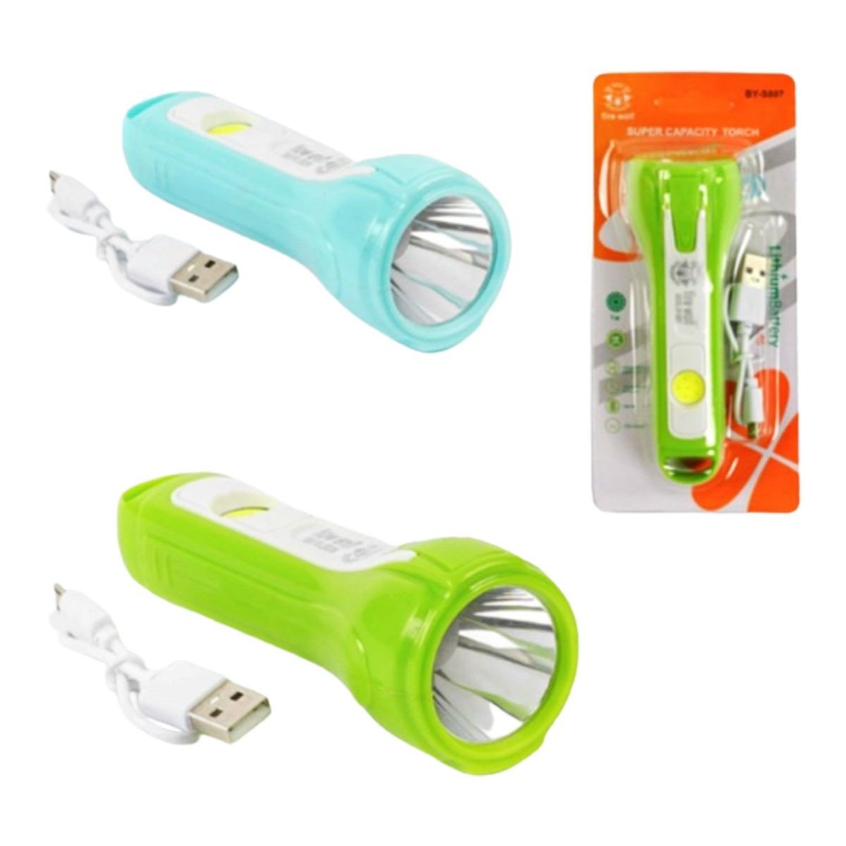 Невеликий пластиковий ліхтарик, який працює від вбудованого акумулятора та заряджається від USB (кабель є в комплекті). Ліхтарик має два джерела світла: 1 основний діод і бічне підсвічування на ручці. Має чотири режими свічення: інтенсивне, стандартне, миготливе, і розсіяне бічне світло. Довжина ліхтарика: 13 см. Різні кольори в асортименті.