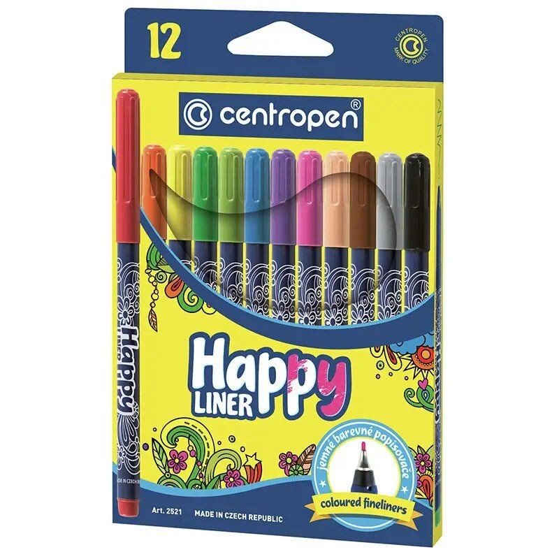 Лінери у 12-ти кольорах підходять не тільки для використання трафаретів та креслення. Тонкий пластиковий вузол в металевій оправі, ширина лінії: 0.3 мм. Є вентильований ковпачок.