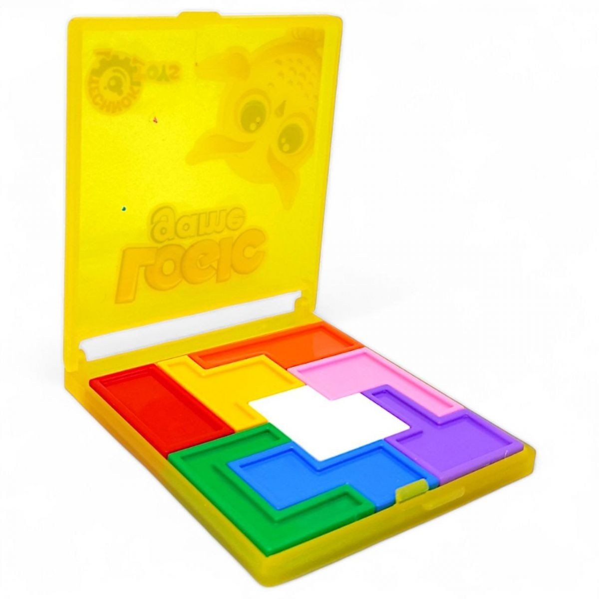 Гра складається з складних фігурок, які малюк може скласти в довільному порядку. У пластиковому коробі 8 деталей складних форм, які з коробочки пропонується висипати, а потім всередину скласти. Максимальна довжина однієї детальки 3.5 см.