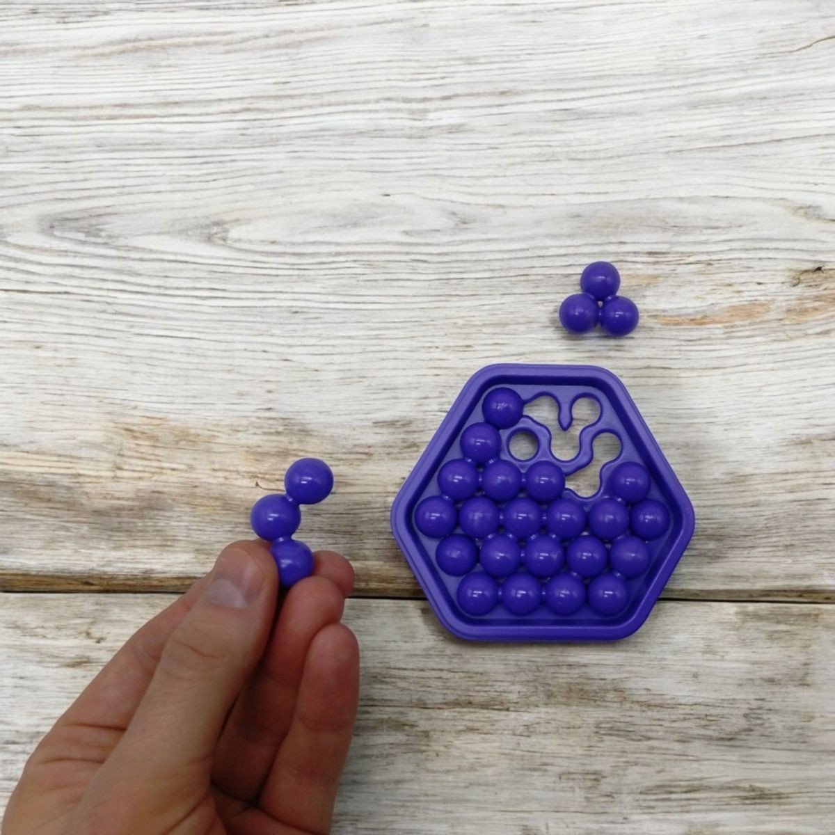 У маленькій коробочці ви знайдете 6 різних деталей та ігрове поле з отворами. Деталі головоломки нагадують фігури з тетрісу та мають різні форми. Ваше завдання - розмістити їх так, щоб усі деталі рівно вмістилися на площині. Складності додають 3 елементи, що вбудовані у поле. Їх можна пересувати, тим самим змінюючи конфігурацію ігрового поля. Різні кольори в асортименті.