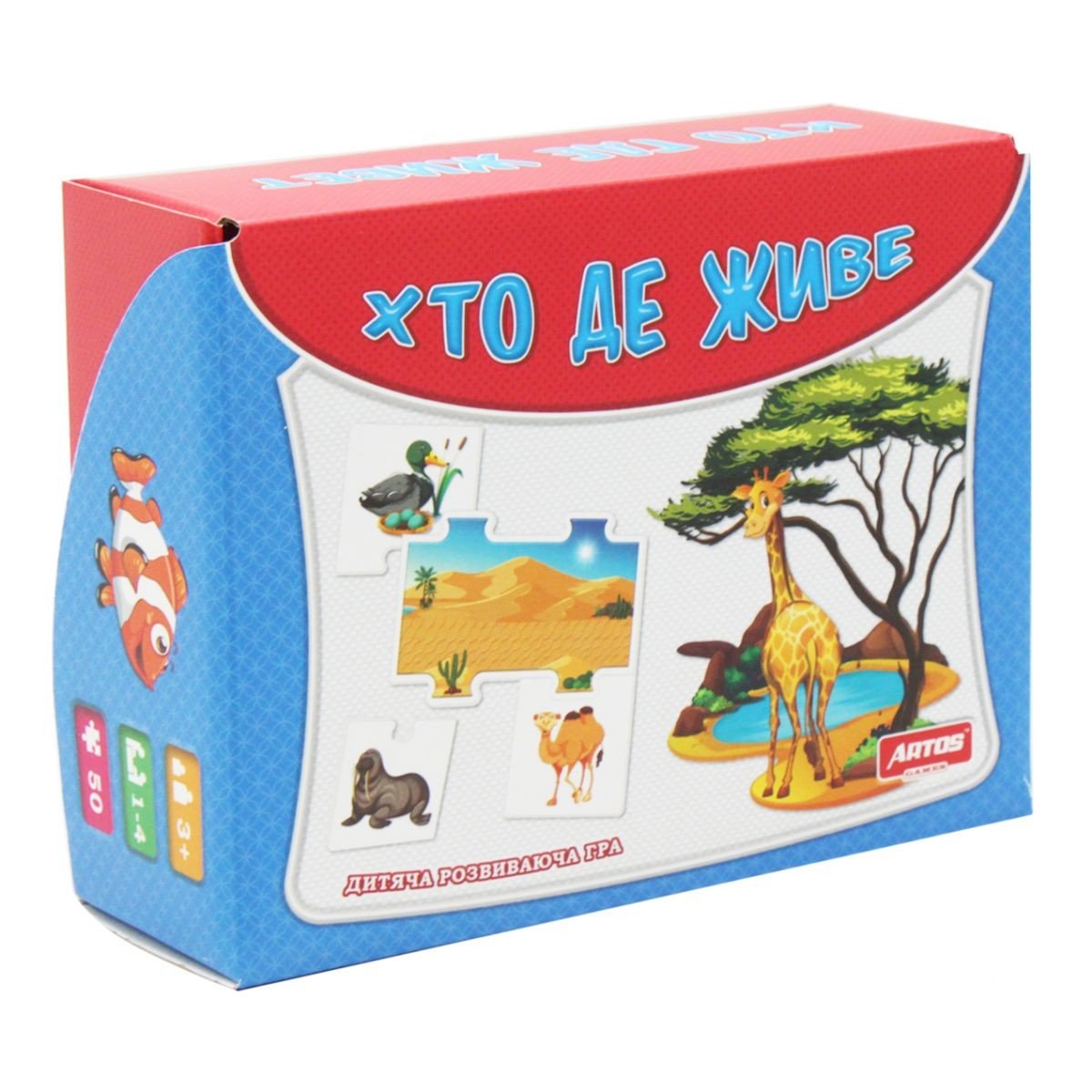 Логічні пазли "Хто де живе". Грати можуть до 4-х чоловік. Завдання гри: Починати краще з однієї круглої картки. З 40 карток підібрати і приєднати їх до круглої так, щоб вони логічно доповнювали центральну картку (тварини і місце їх проживання). У наборі: круглі картки з основним малюнком, що задає тему - 10 шт., Картки з додатковими малюнками - 40 шт.