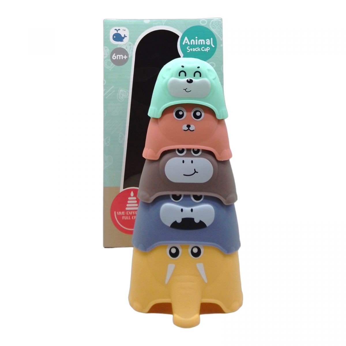 Набір із 5 різнокольорових чашок у формі веселих тварин різного розміру, з яких можна побудувати пірамідку Ідеальна гра для вивчення рахунку: чим більший тваринка, тим більше число. Крім того, ці чашки можуть служити чудовою іграшкою для водних процедур, оскільки вони мають маленькі отвори, через які може стікати вода. Така іграшка не лише розвиває логічне мислення, але і робить купання веселим та навчальним заняттям для малюка