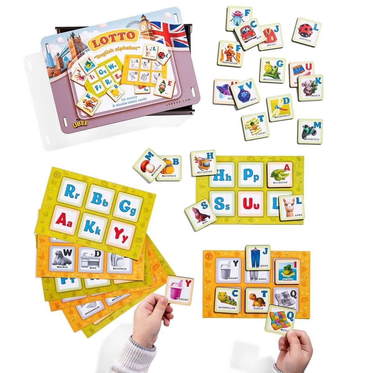 Необхідно роздати всім учасникам по ігровому полю (картки) на якому зображені різні літери і малюнки. Усі фішки треба покласти у мішечок (йде у наборі) та перемішати. Кожен гравець повинен по черзі діставати фішки. Якщо у когось з гравців виявиться малюнок ідентичний малюнку на фішці - він забирає її собі і накриває фішкою свій малюнок на картці. Виграє той, хто перший накриє своє ігрове поле.