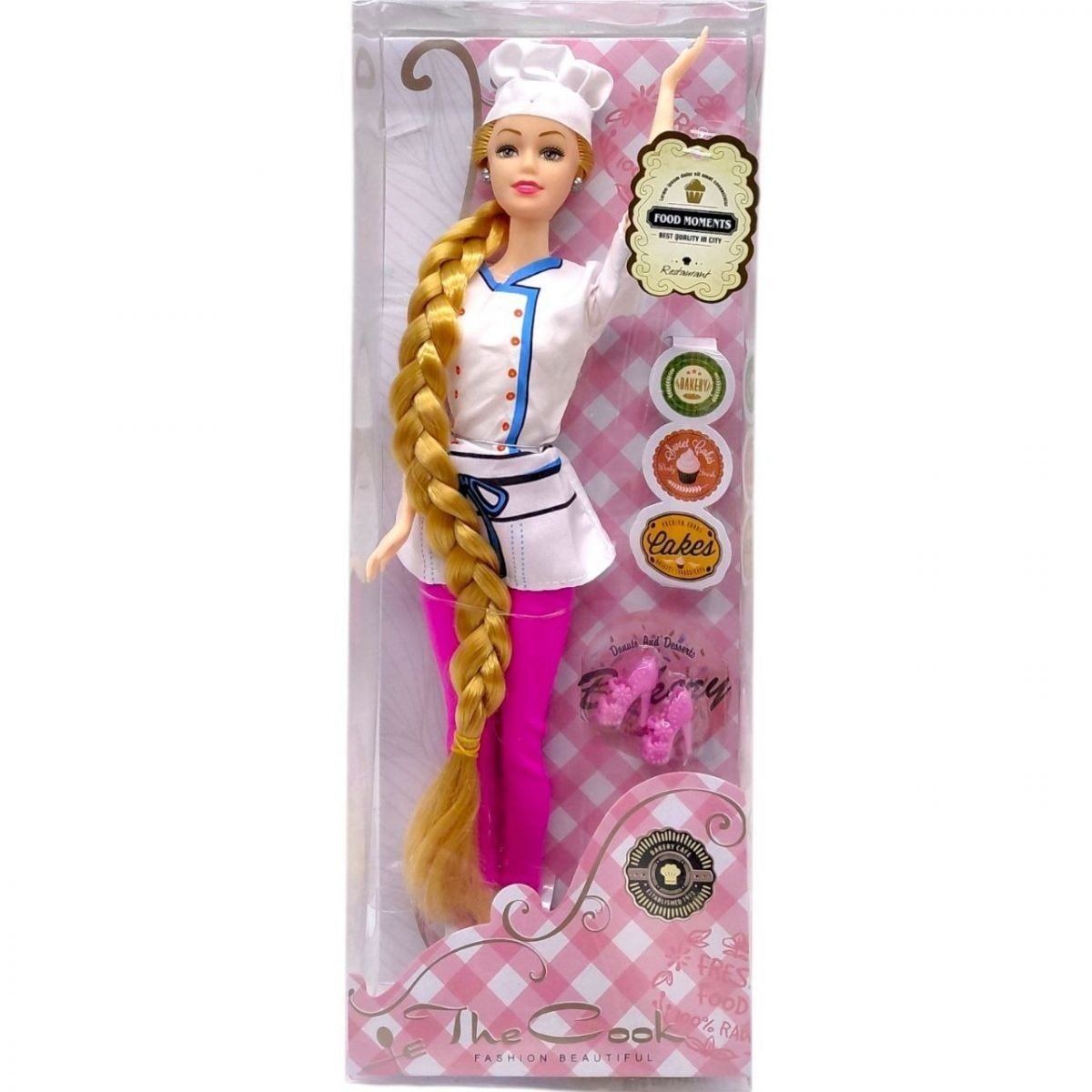 Лялька серії Food Moments у ролі кухаря — яскрава іграшка для сюжетних ігор. Модель має довге волосся, тематичний костюм та рухомі елементи, що дозволяють змінювати пози. Образ кухаря з аксесуарами робить гру більш цікавою. Підходить для дітей від 3 років, розвиває уяву та рольове мислення.