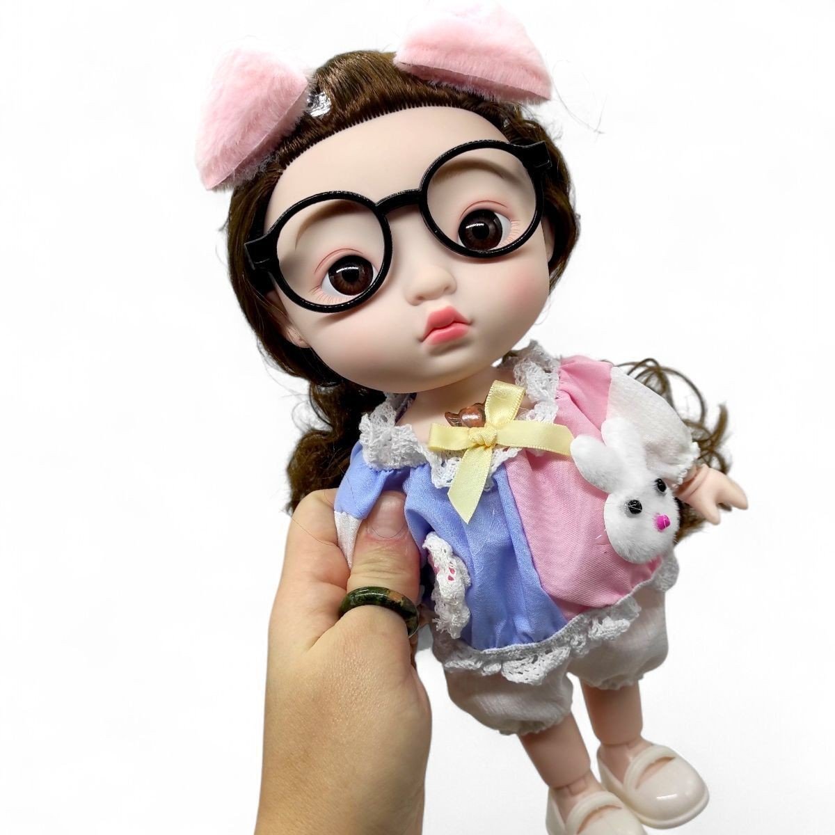 Лялька "Interesting Girl" - це модна ігрова лялька, яка вирізняється великою головою, виразними рисами обличчя та шарнірною конструкцією тіла. Лялька має великі круглі окуляри та довге каштанове волосся. Одягнена у комплект, який показує її унікальний стиль та робить дівчинку ще милішою. Висота ляльки становить 28 см, має рухомі суглоби, що дозволяє їй приймати різні пози. У комплекті є дзеркальце та гребінець для догляду за волоссям. Підходить для дітей від 3+ років, сприяє розвитку естетичного смаку та рольової гри.
