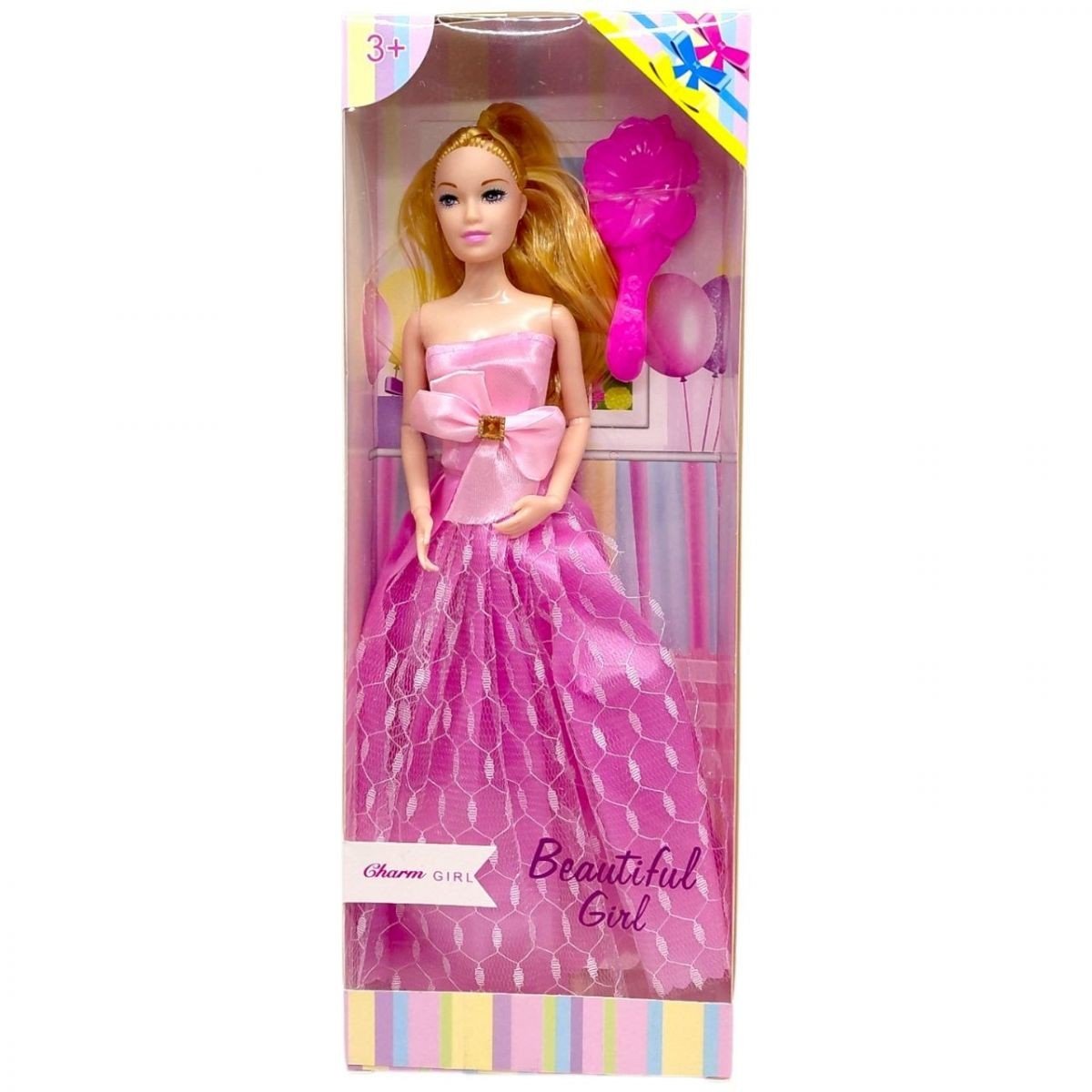 Лялька у святковій рожевій сукні з бантом — елегантна іграшка для сюжетних ігор. Модель має довге волосся, витончений образ та рухомі елементи, що дозволяють змінювати пози. Підходить для дітей від 3 років, сприяє розвитку уяви, емоційного сприйняття та інтересу до гри.