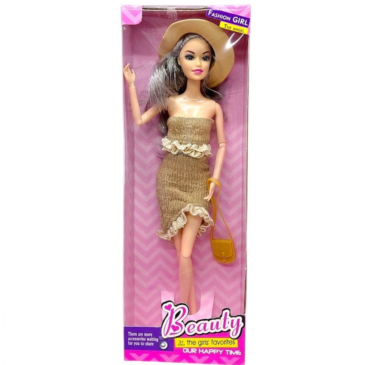 Лялька, типу барбі, в стильному одязі (БЕЖЕВА СУКНЯ)