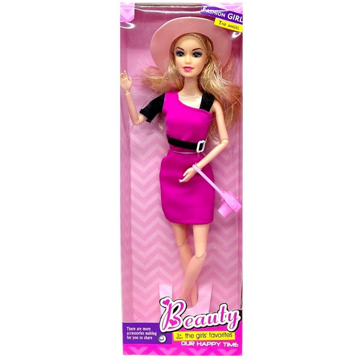 Опис Лялька, типу барбі, в стильному одязі (МАЛИНОВА СУКНЯ)