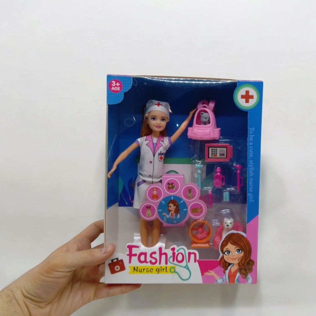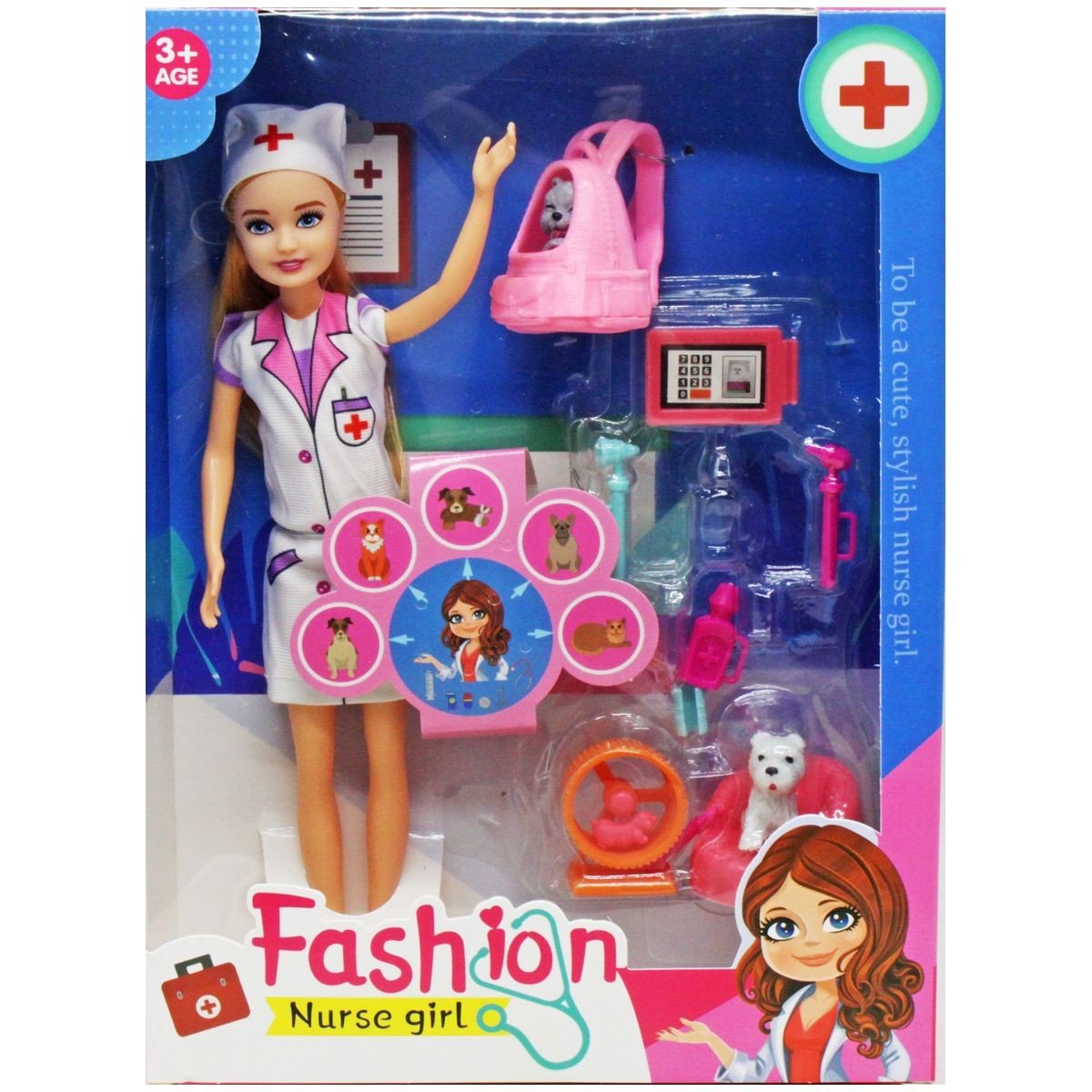 Набір включає ляльку, одягнену в професійний костюм ветеринара, а також все необхідне приладдя для піклування про тварин. У комплекті ви знайдете рюкзачок-перенесення з милим песиком усередині, песика на зручній лежанці, хомʼячка, який весело крутиться в колесі, і планшет лікаря для записів про здоровʼя вихованців. З цим набором діти можуть розігрувати різні сценарії ветеринарної практики, навчаючись піклуватися про тварин та розвиваючи свої навички в ігровій формі.