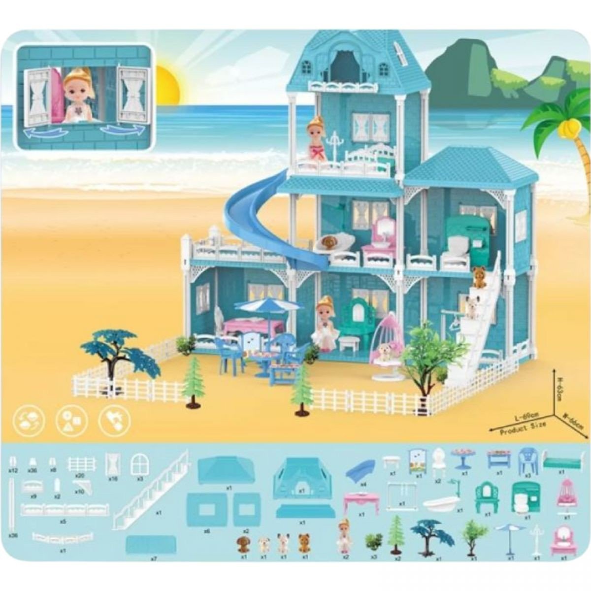Будинок має кілька поверхів та відкриту конструкцію, завдяки чому дитині зручно розміщувати ляльок і меблі та змінювати інтер’єр. У наборі передбачені різні кімнати та аксесуари для облаштування житлового простору. Іграшка допомагає розвивати фантазію, уяву та комунікативні навички під час гри.