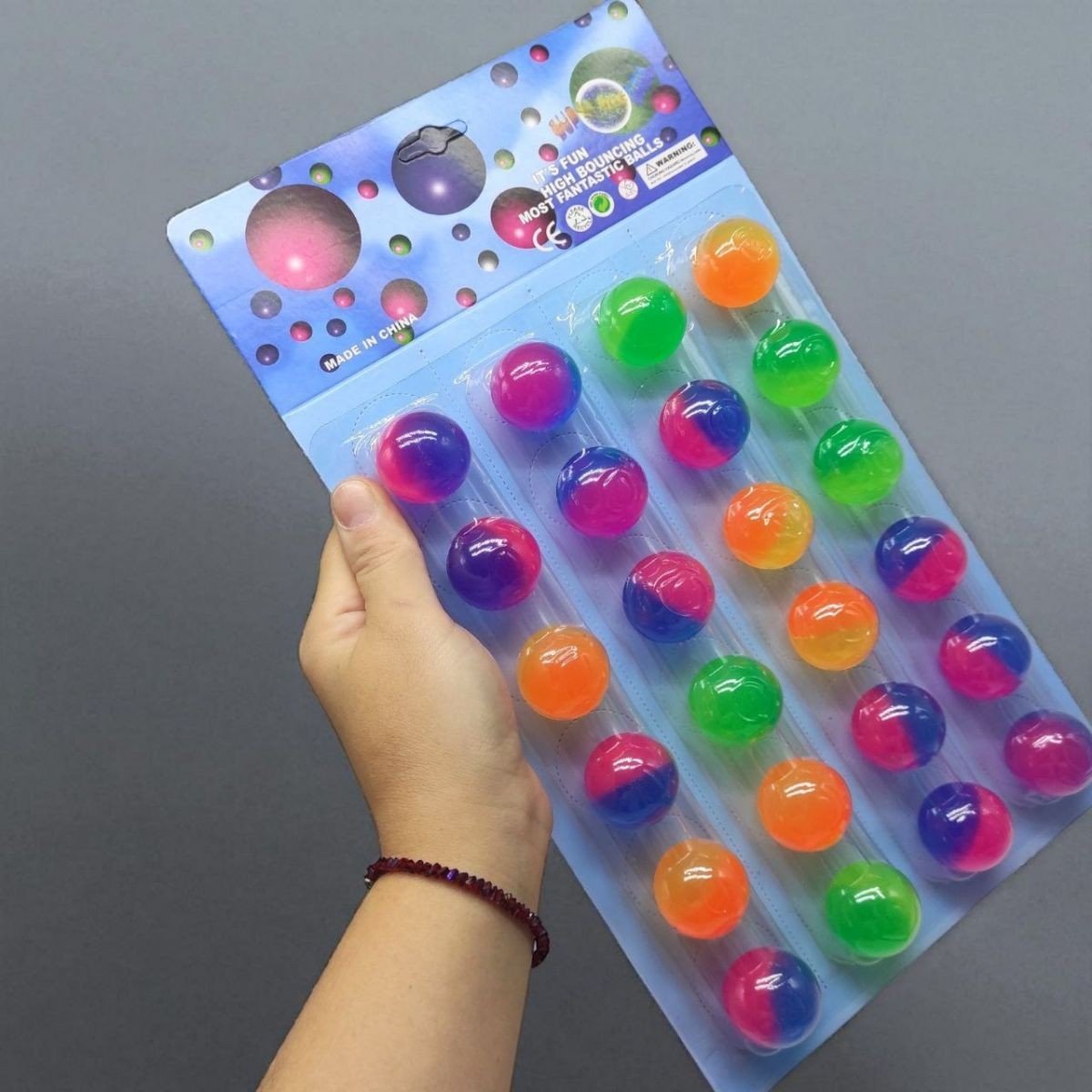 Бренд: MIC Упаковка: Планшет Колір: Різнобарв'я Вага з упаковкою: 335 г Габарити в упаковці: 3 x 19 x 34 см Країна виробник: Китай Матеріал: Каучук Комплектація: М'ячик-стрибунці