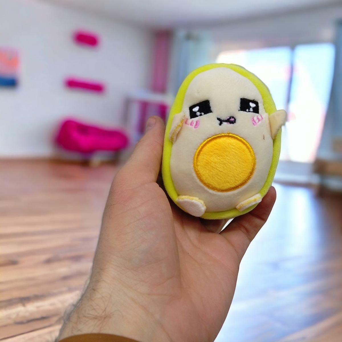 Оригінальний брелок з підвіскою у вигляді авокадо з милою мордочкою. До брелока прикріплено металеве кільце. Ідеально підійде у якості прикраси для сумки або одягу, також можна прикріпити до звʼязки ключів. Довжина із кріпленням: 15 см. Розмір іграшки: 10х8х6 см.