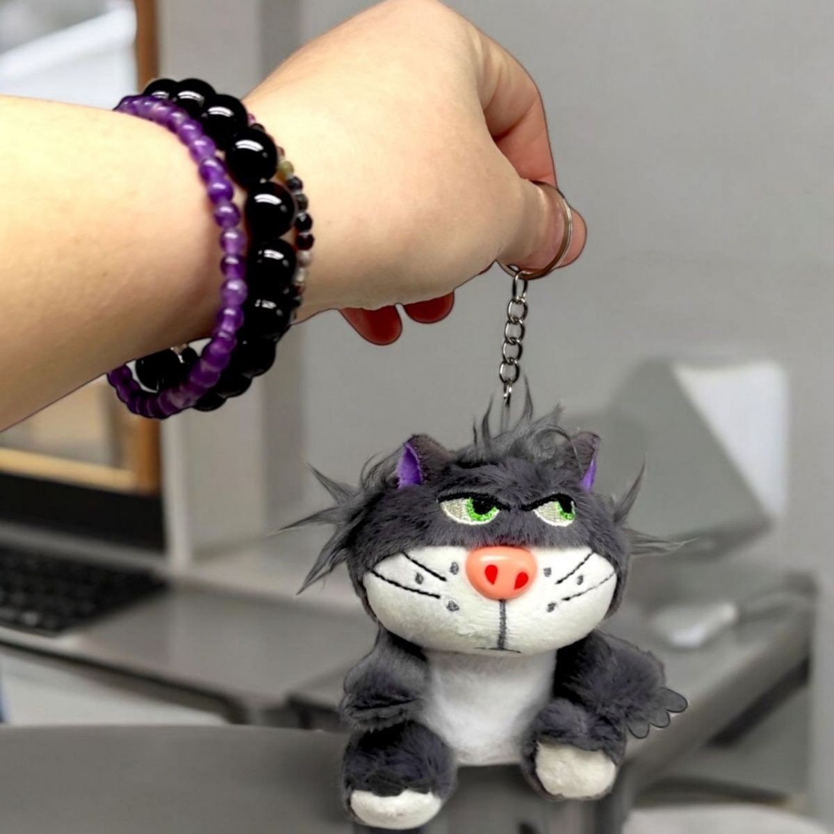 Кумедненький брелок у виді дуже байдужого сірого котика. Ідеально підійде в якості прикраси для сумки або одягу, також можна прикріпити до звʼязки ключів. Сподобається будь-якому фанатику котиків - чи дорослому, чи дитині. Розмір фігурки без кільця - 13 см.