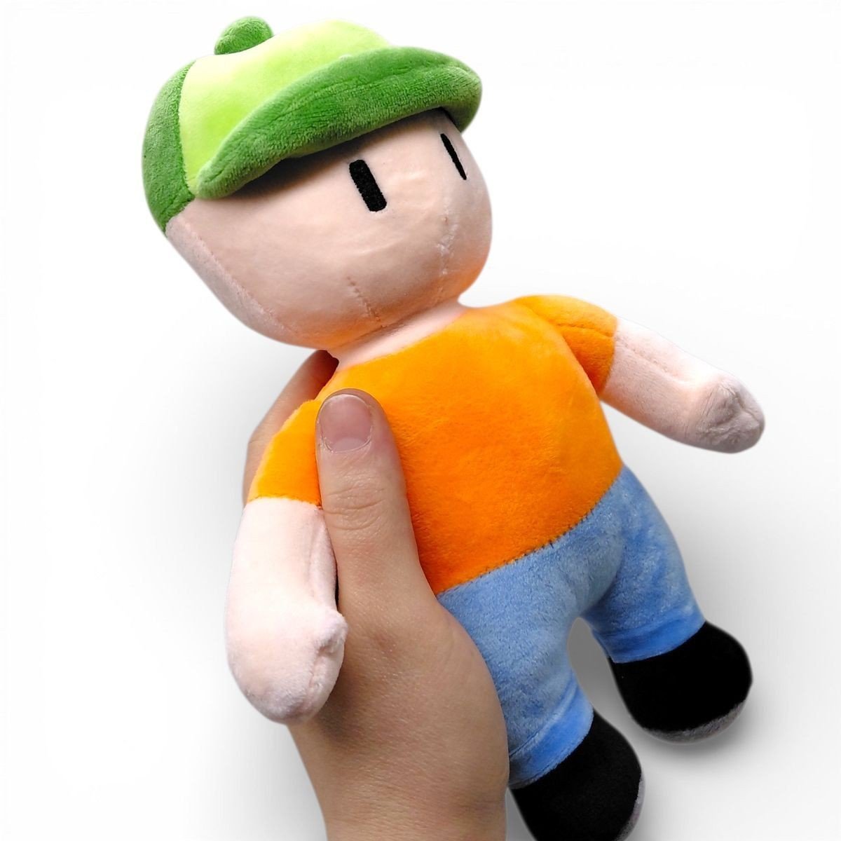 Плюшевий «Чоловічок» виконаний у мінімалістичному стилі з м’якого текстилю. Іграшка має яскравий одяг і акуратне оформлення, що привертає увагу дітей. Завдяки висоті приблизно 25 см її зручно брати в руки, носити із собою або використовувати як улюблену іграшку для сну.