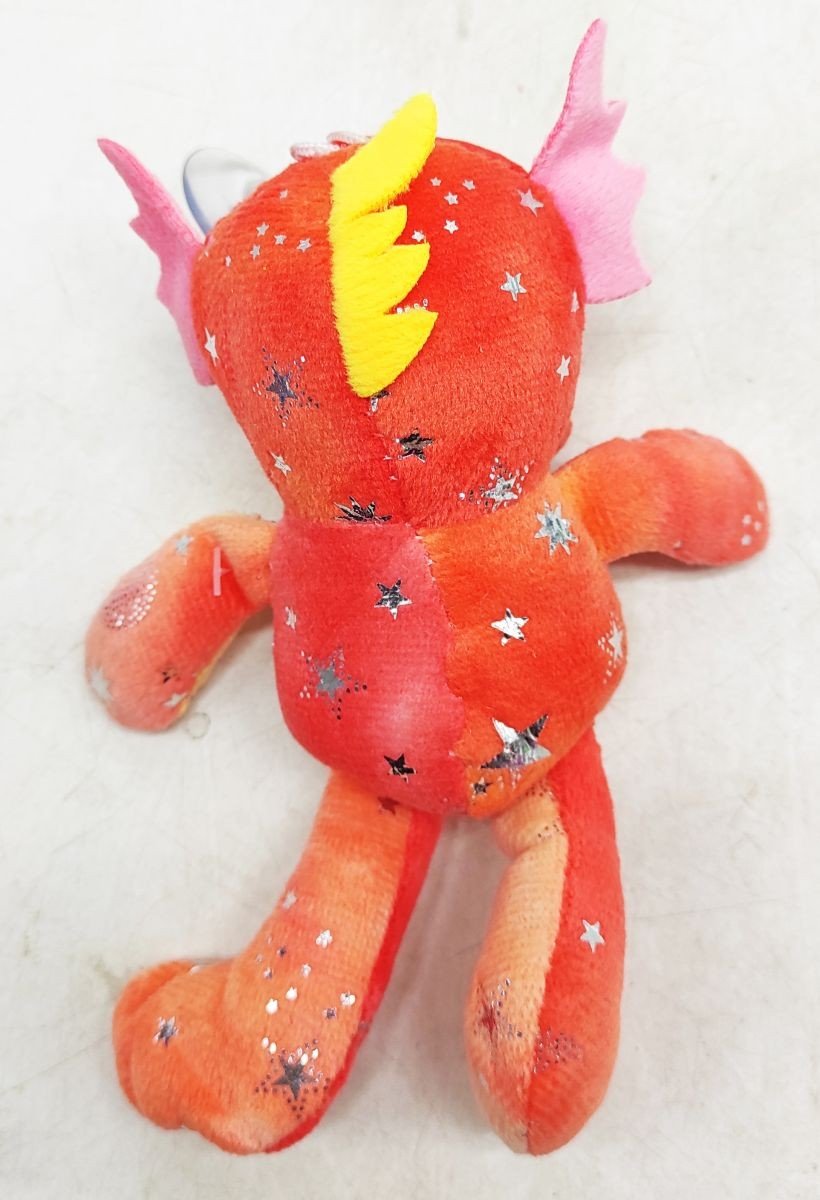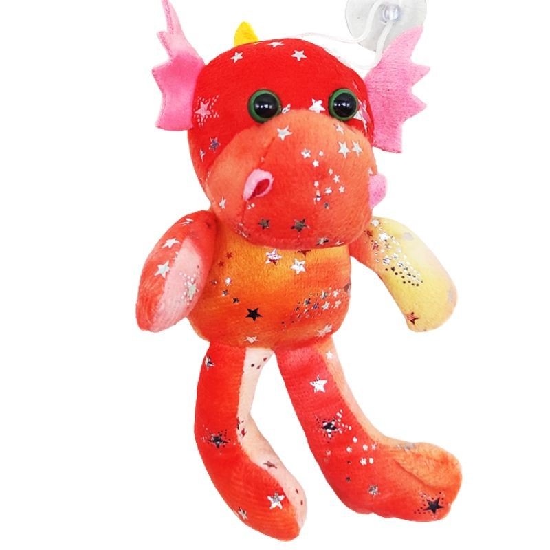 Мʼяка іграшка у вигляді дракончика, прикрашеного блискучими зірочками. Іграшка мʼяка і приємна на дотик, виготовлена з якісних матеріалів. Очі пластикові. Оснащена зручною петелькою з присоскою, за допомогою якої іграшку можна прикріпити до будь-якої гладкої поверхні. Розмір іграшки: 16 х 8 х 8 см. Буде чудовим подарунком дитині будь-якого віку.