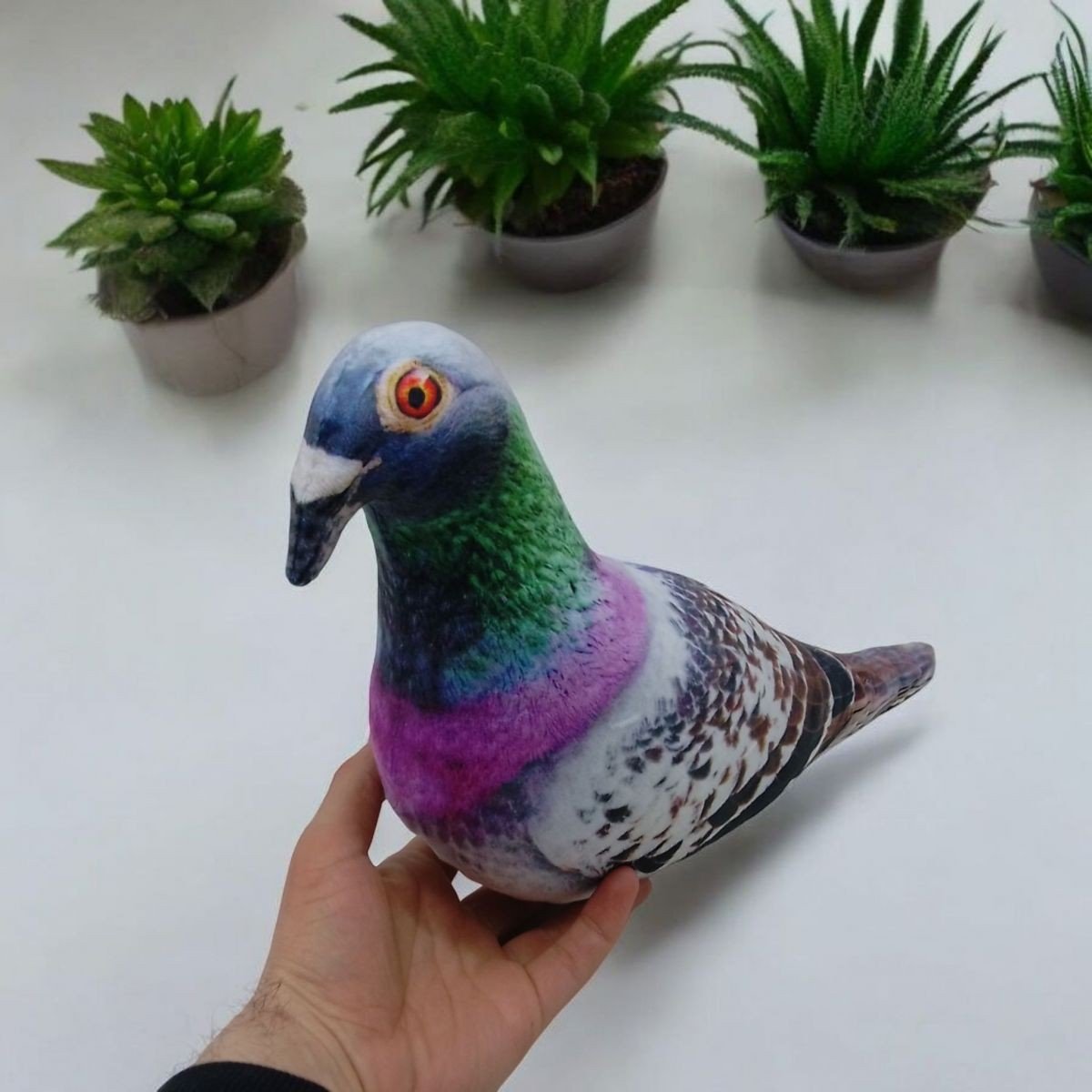 Милий мʼяконабивний голуб стане чудовим доповненням до будь-якої колекції іграшок. Він виглядає реалістично, але при цьому має кумедний вираз обличчя, що неодмінно підніме настрій.