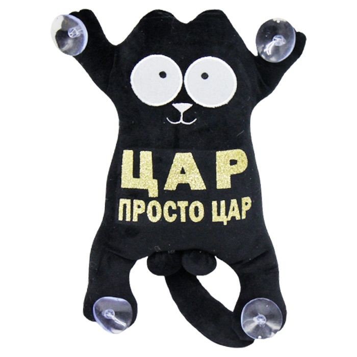 Іграшка відмінно підійде як подарунок чи прикраса в машину. Має присоски на лапках. Котик із написом "Слава нації! Смерть ворогам!". Розмір іграшки 30х15х7 см.