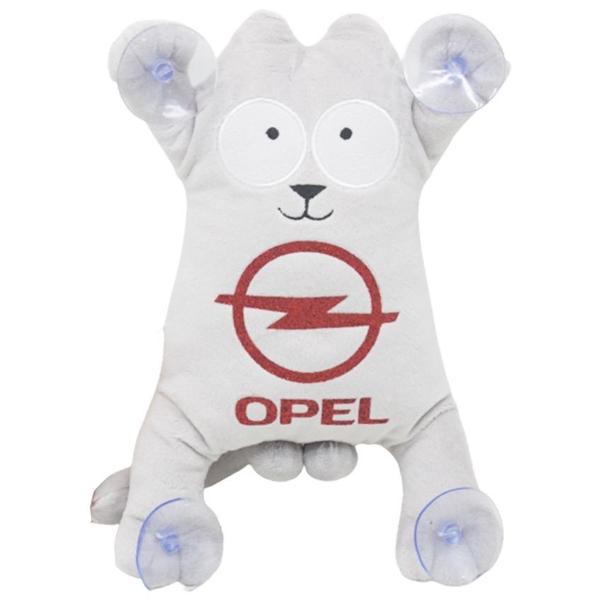 Іграшка відмінно підійде як подарунок чи прикраса у машину. Має присоски на лапках. Котик із написом "Opel". Розмір іграшки 28х15х6 см .