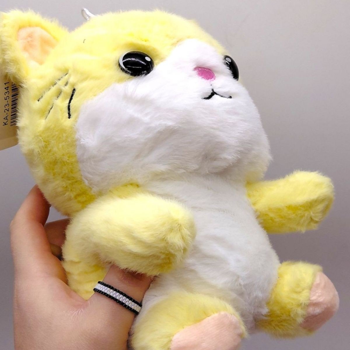 Компактна м’яка іграшка у вигляді сірого котика - милий друг для щоденних ігор та обіймів. Завдяки висоті близько 20 см іграшка зручна для дитячих рук і легко поміщається у рюкзак чи на полицю.