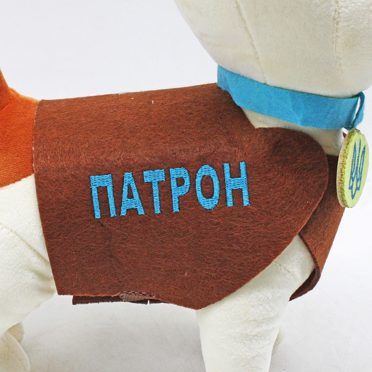 Мʼяка іграшка у вигляді песика-сапера Патрона. Одягнений у фетровий жилет із символікою ЗСУ. Така іграшка буде чудовим подарунком як дорослій, так і дитині. Виконана з якісного та мʼякого матеріалу. Розмір іграшки: 32х22х12 см.