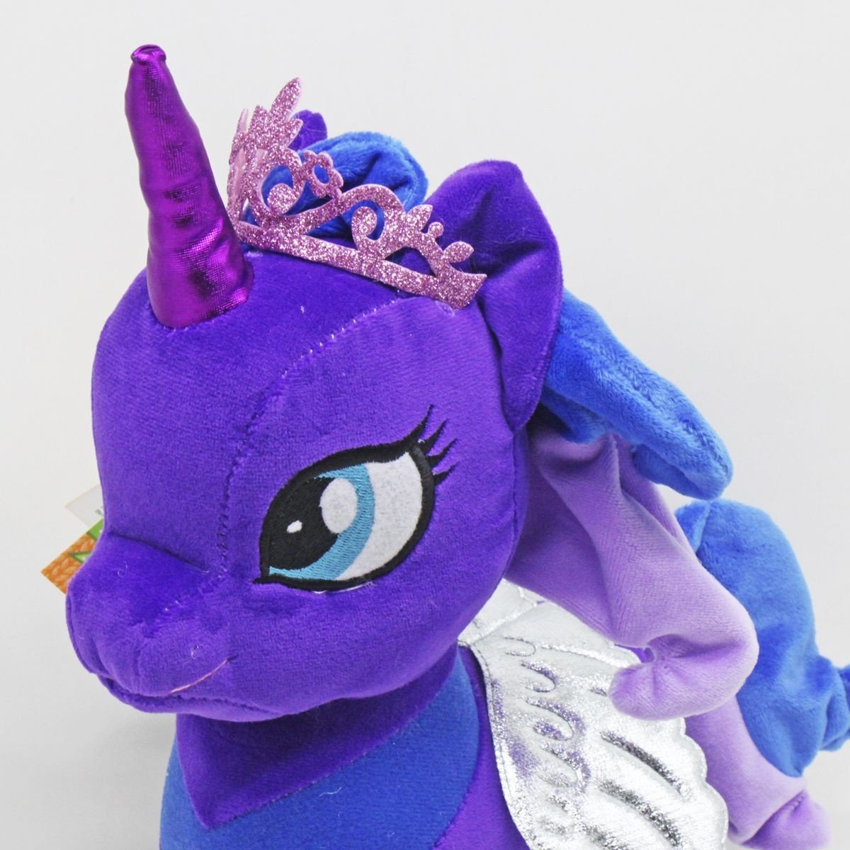 Чарівна мʼяка іграшка у вигляді поні-єдинорога, виконана у стилістиці популярного мультсеріалу "My little pony" (Моя маленька поні). Ріг та крильця виконані з красивої блискучої тканини. Іграшка дуже мʼяка і приємна на дотик, якісна та міцна. Розмір – 25х26х10 см.