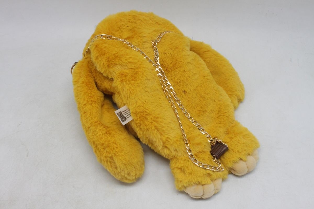 Милий дитячий рюкзак у вигляді кролика. Дуже мʼякий і приємний на дотик, виконаний з яскравої та пухнастої тканини. Оченята пластикові. Оснащений двома металевими лямками-ланцюжками на карабінах. Є одне відділення на блискавці, в яке можна покласти телефон, записник, ключі або інші невеликі аксесуари. Розмір рюкзака – 27х20х11 см.