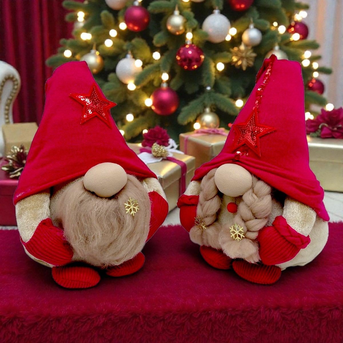 Мʼяка іграшка "Скандинавський гном" (Hand Made) висота 28 см, дівчинка (червоний) 25 см