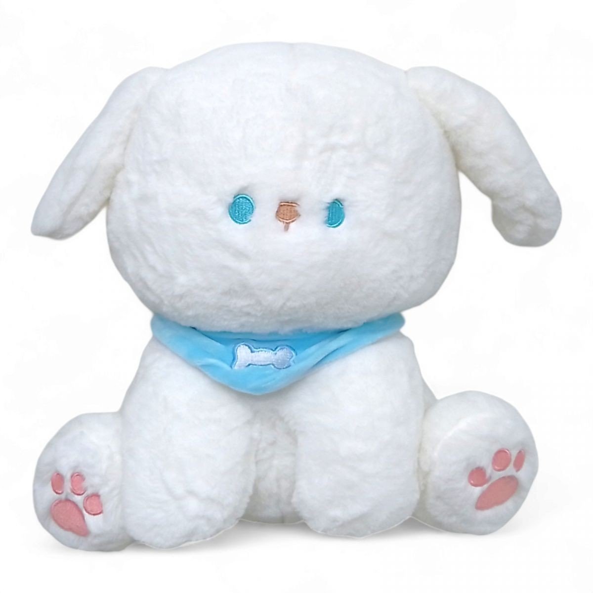 Чарівна дитяча іграшка у вигляді кумедного пухнастого цуценя. Іграшка виконана з якісних і дуже приємних на дотик тканин. Навколо шиї у цуценя повʼязана яскрава хустинка. Мордочка та лапки вишиті на тканині. Буде чудовим подарунком як дитині, так і дорослому. Розмір іграшки: 30х30х25 см.