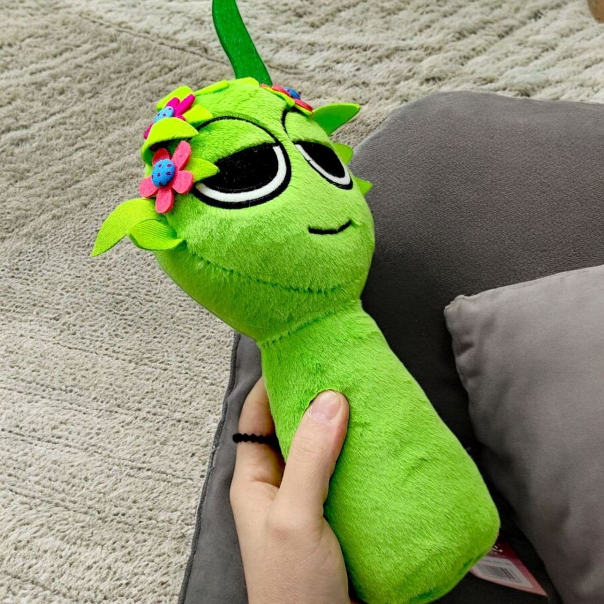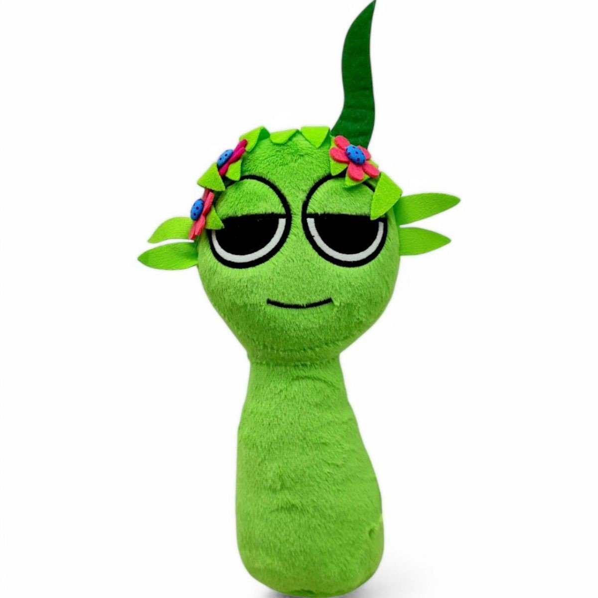 Мʼяка іграшка "Спрункі Венерія", персонаж музичної гри "Incredibox Sprunki", Зелений Спрункі з темно зелений рогом. Розмір іграшки - 26 см. Завдяки своїм розмірам є чудовим компаньйоном для прогулянок. Виготовлени з штучного трикотажного хутра, бавовни, має синтетичний наповнювач. Рекомендовано для діток старше 3-х років.
