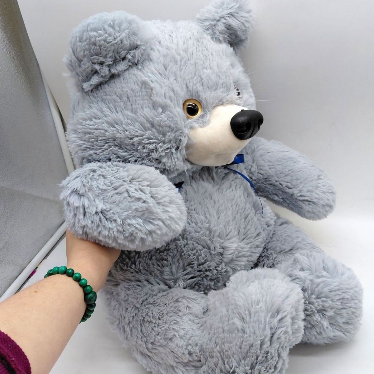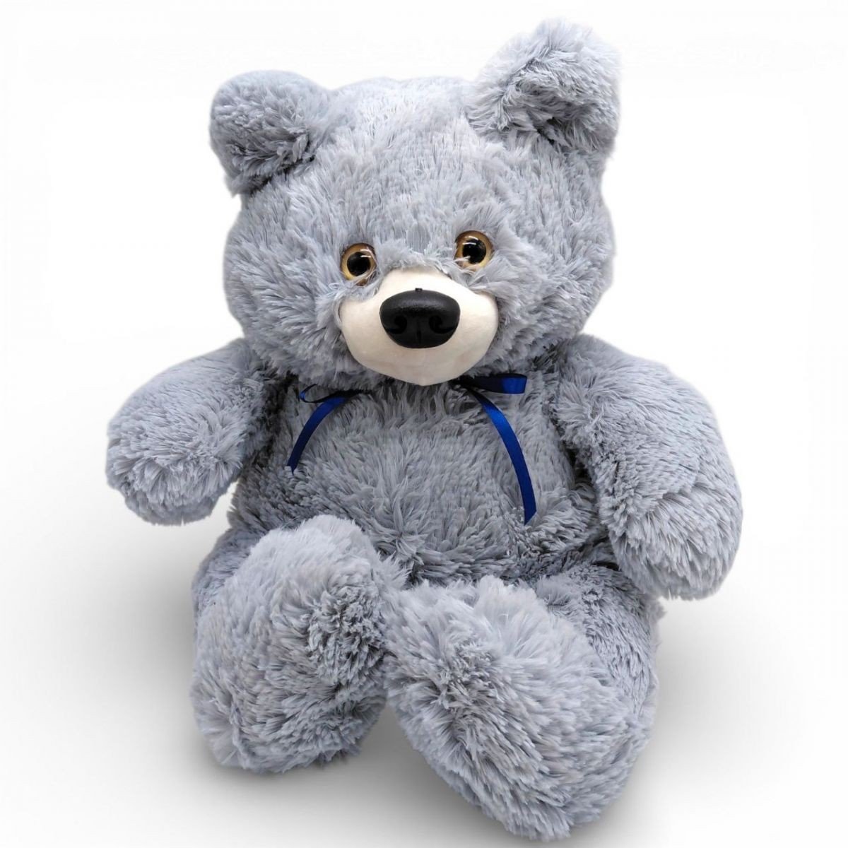 Велика мʼяка іграшка у вигляді пухнастого ведмедика. Іграшка виконана з дуже мʼяких і приємних на дотик матеріалів, має якісні та міцні шви. Очі та носик пластикові. Буде чудовим подарунком дитині будь-якого віку. Розмір: 40 х 50 х 30 см. Виготовлено в Україні.
