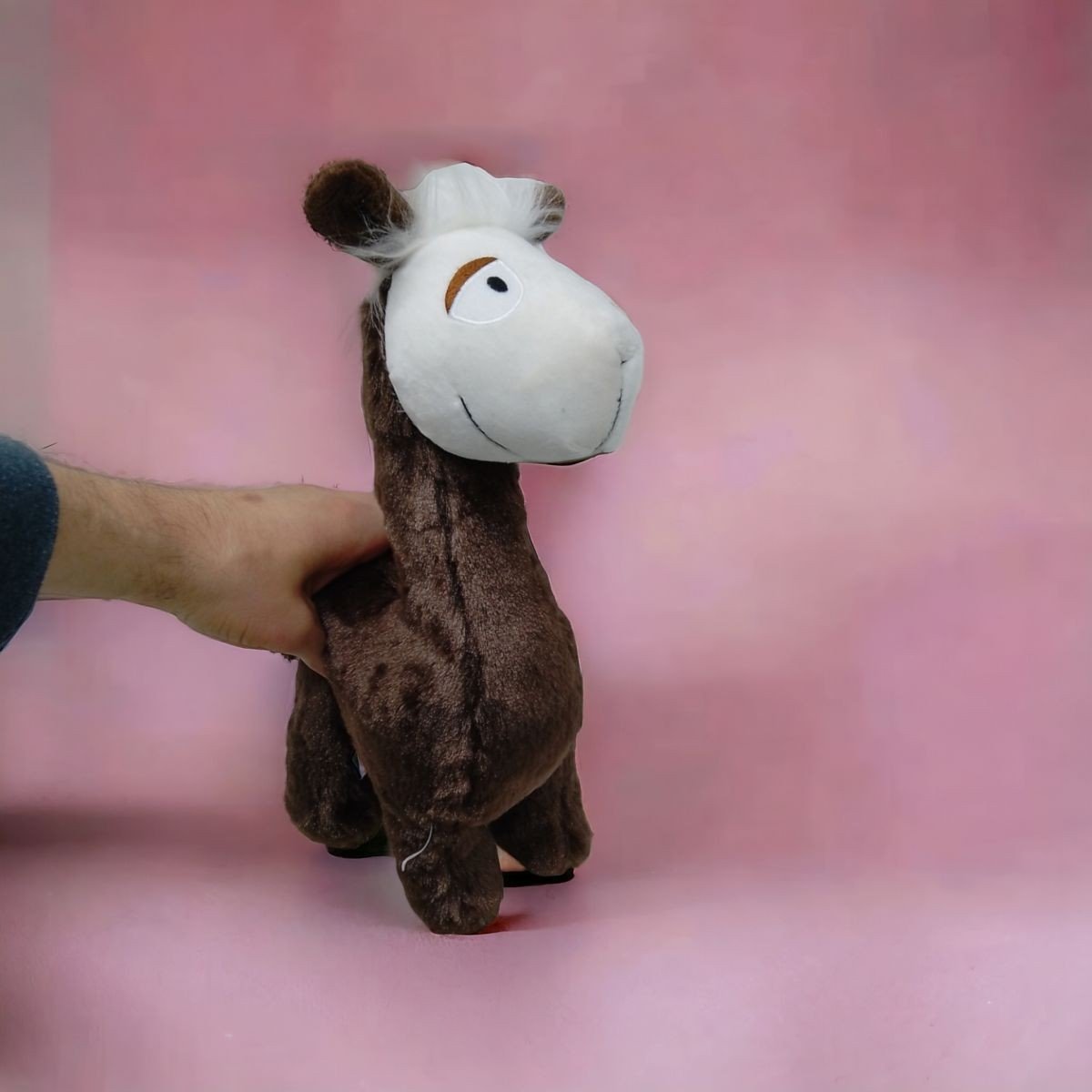 Чарівна мʼяка іграшка у вигляді пухнастої альпаки. Виконана з мʼяких і дуже приємних на дотик тканин. Грива виконана зі штучного хутра. Мордочка вишита на тканині. Іграшка має міцні та надійні шви. Іграшка буде чудовим подарунком і обовʼязково порадує малечу. Розмір: 20 х 35 х 11 см.