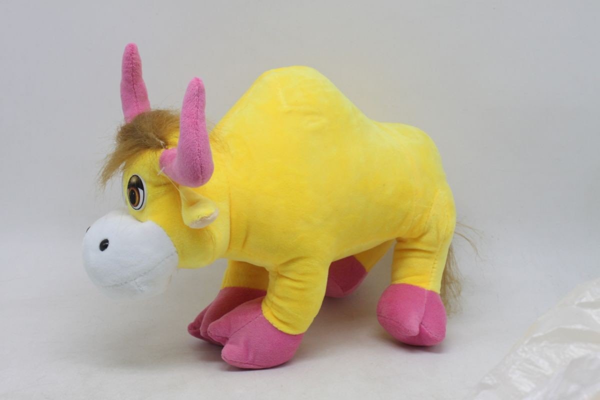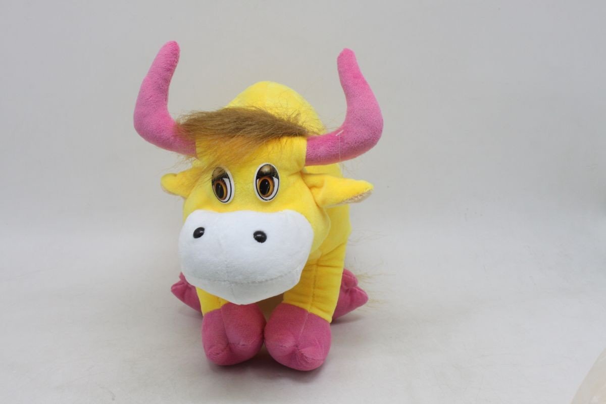 Мила мʼяка іграшка у вигляді яскравого бичка. Іграшка щільно набита, добре тримає форму. Бегемотик може стояти без опори. Виготовлена з мʼяких і приємних на дотик тканин, має міцні та надійні шви. Буде чудовим другом дитині будь-якого віку. Розмір іграшки: 33х28х18 см.